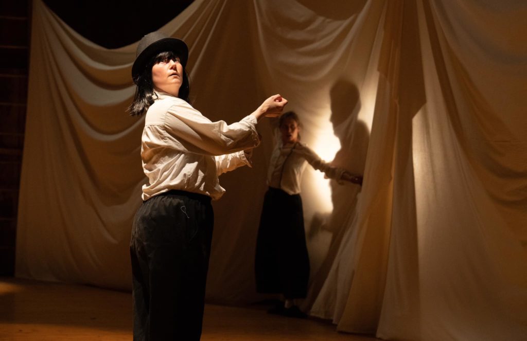 The performance ends, if you can call it an end, with an embrace: the trio Creatures creep onstage, almost presentationally, rather than half-hidden in shadows and under floorboards, as they have been for most of the play. The bone Creature, arguably the most unsettling with its animal skull head, wraps its arms around one of the human selves, resting a spindly hand on her back.