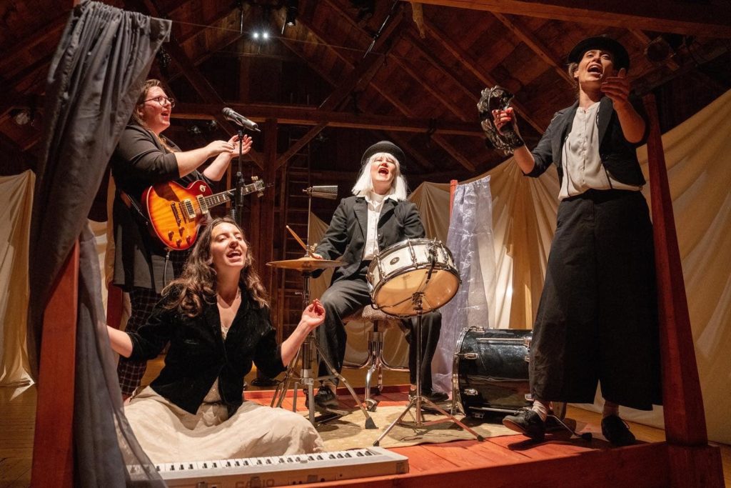 Leaving the barn performance space at Double Edge Theatre this weekend felt like stumbling off of a merry-go-round. As my friend and I removed our masks and breathed in the fresh farm air, our eyes drifted upward; for a breath or two, we found ourselves stunned by the moon spinning through the sky, until we realized it was just the clouds, not the universe, drifting across our gaze. I’m not sure if we would have fallen under the spell of this cosmic optical illusion if we hadn’t just emerged from Lightning, a dizzying, trickster-y performance that blurred the edges between dream and reality.