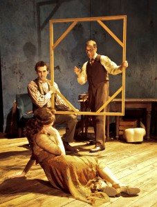 The moment the audience enters the doors (actual scenery), they are invited to join Max Beckmann’s collage of memories. An accordion player crosses the stage and roams the audience prior to the start of the show. The stage is in a state of ordered disorder—the perfect working space for creating art. All of the elements (the music, lighting, acting, scenery, and film) swirl around to form a story of love, loss, sorrow and hope.