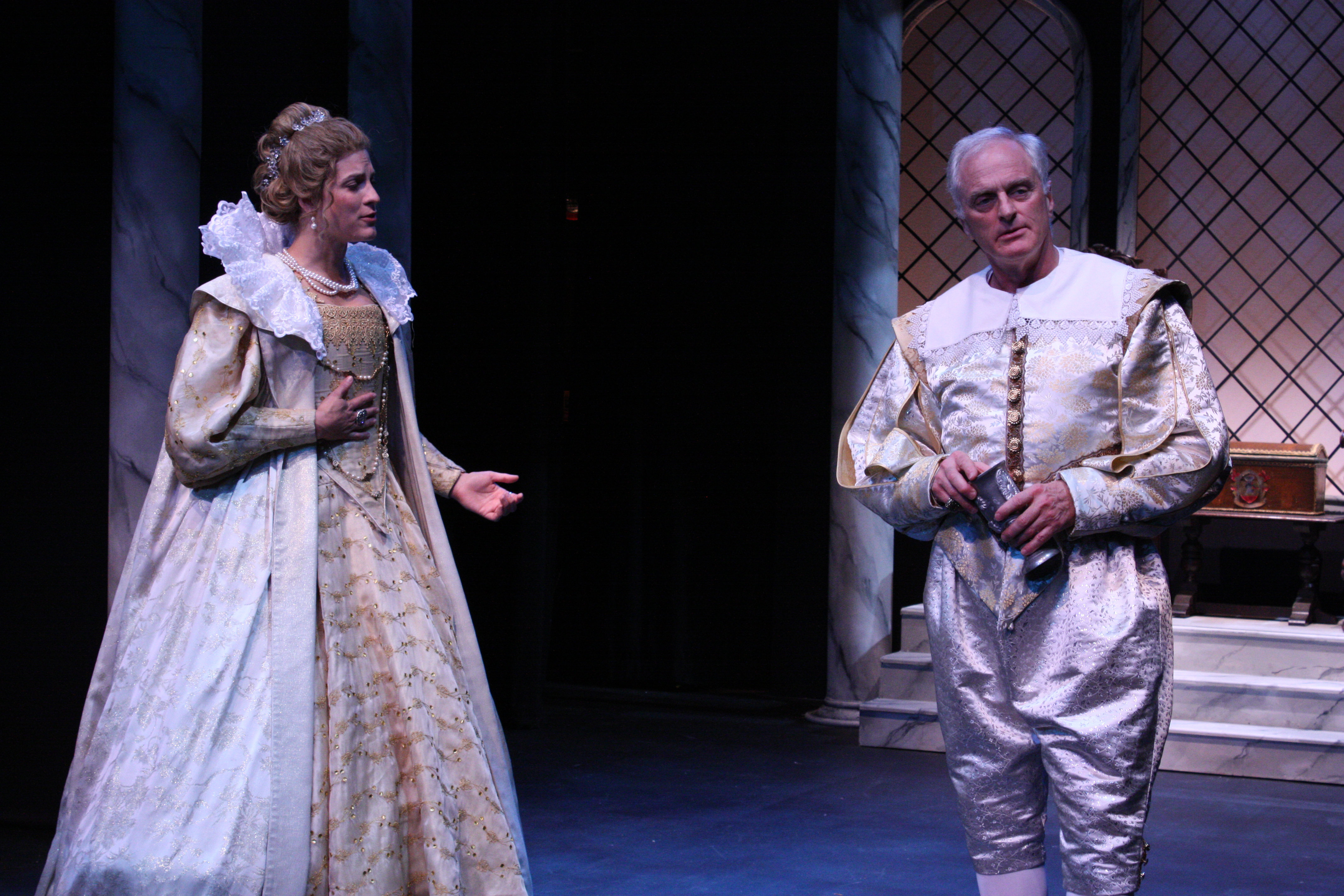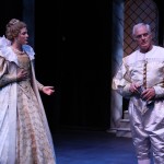 Jeremiah Kissel delivers an articulate and charismatic Ben Jonson. Jonson matches wit with Shakespeare, but also knows the price of working for the monarchy. Sir John Harrington, portrayed by Dafydd ap Rees, admonishes Shakespeare the lack of political commentary in Will’s plays. John Kuntz is the loquacious John Marston who suffers from Ben Jonson’s constant derision. While he tries Jonson’s patience, Jonson enjoys the abandon that Marston lives with.