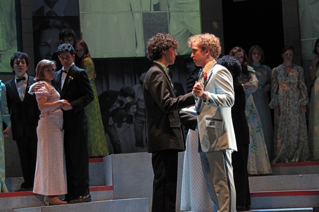 This is what the Boston Children’s Theatre production of Reflections of a Rock Lobster does best, creating the claustrophobia of a gay teen’s world where everything feels hostile, including one’s own feelings. The play, put on by the Boston Children’s Theatre with a few grown-ups thrown in the mix, chronicles the true story of a pair of trailblazing gay teens who in 1980 challenged their school’s ban on same-sex couples at the prom and made the world a little bit less hostile. It’s difficult to pull off a play about social change without sinking into an overabundance of earnestness. At its worst, such a play can seem like an ABC afterschool special or a “special episode” of the Facts of Life. Most productions can only hope to the middling level of a so-so Denzel Washington drama. Reflections, too, struggles with the weight of its earnestness, but it stays on track thanks to good pacing and a handful of strong performances by the cast that appear effortless.