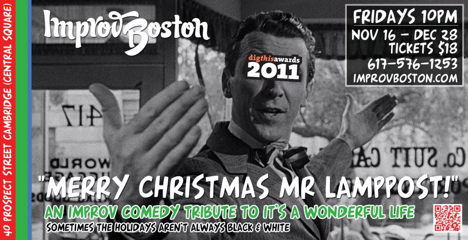 Unlike My Dark Love, however, there seems to be a lot more affection for It’s A Wonderful Life. The humor, while often delightfully scatological and inappropriate, feels softer and kinder. It’s as if the Christmas holidays have given the show as gauzy and gentle an outlook as the original film. Merry Christmas, Mr. Lampost! remains a singularly adult performance, but it’s also a tribute to a much warmer movie with unrivaled mass appeal. Because of this, ImprovBoston’s most recent offering is sweet in