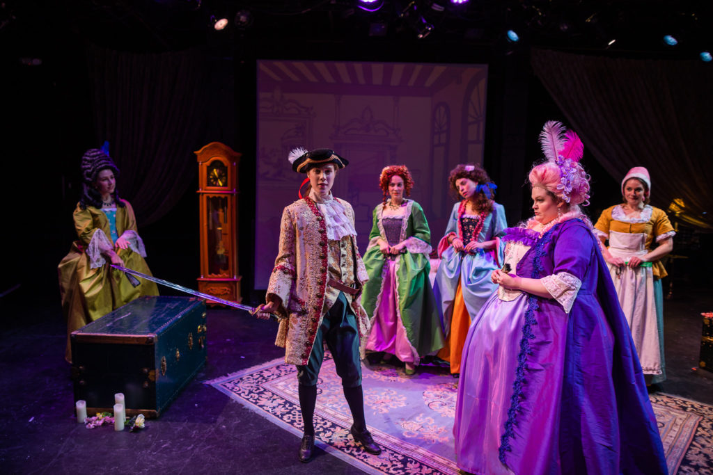 Living composer, Dan Shore’s The Beautiful Bridegroom is a charming, accidental lesbian romance in the style of commedia dell’arte… And the dramatic opposite of Miss Havisham. In it, a family (Brynne Pulver, Natalie Logan, Charlotte Jackson, Stephanie Hollenberg) hilariously vyes for the attentions of boy suitor, Captain von Frauenliebe (Elizabeth Kinder) who is actually the niece of matchmaker Madame Kirsten (Katherine Maysek) in disguise. To sum up, the women discover that they don’t need men. Except that they do.