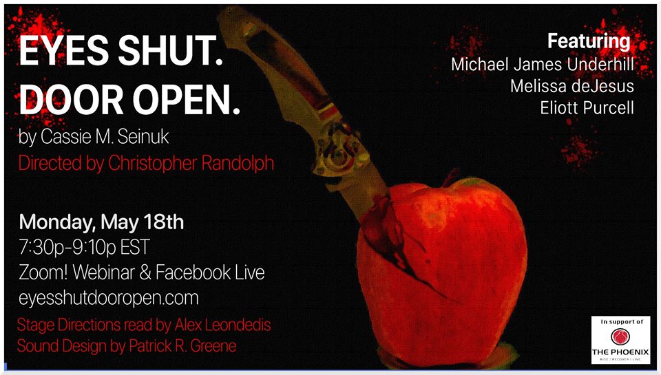 ZOOM — I reviewed Eyes Shut. Door Open. four years ago at Warehouse XI in Somerville, MA. This response to the May 18 reading does not supersede the 2016 critique. It exists in addition to it. It is critical to examine theatre’s adaptation to online performance.