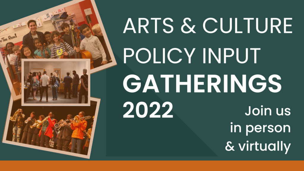 To join the ongoing dialogue, sign up for MASSCreative’s upcoming Arts & Culture Policy Input Gatherings near you, available in-person and online (with closed captioning available).