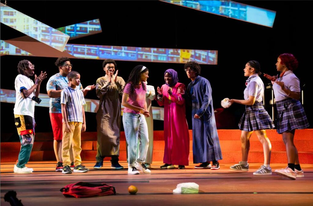 Playwright Udofia tells us in the playbill’s heartfelt “A note from the Playwright” that Kufre n’ Quay is her love letter to the young Black and Brown students whom she loved to teach. It’s for the kids who made her laugh, feel challenged, and drove her “a bit wild.” The ones she said she loved with a fierce, expansive heart. Since it is written for them and not us, it becomes our duty as adults to receive this play from that perspective: Adults, you may or may not recall that childhood is stressful. It looks carefree from decades later, but it isn’t. Kids are growing into themselves in an overwhelming world of harsh lights, loud noises, marketing schemes, and unrealistic expectations that isn’t designed for them; it’s barely even designed for us. So kids deserve to make understandable mistakes within a healthy environment; And, they need to watch us learn and rebuild from our own mistakes. If children learn from watching us, we might as well act like it.