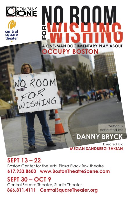 (Boston) No Room for Wishing is a compilation of interviews and live recordings from the Occupy Boston Movement. The production was written and performed by local actor, Danny Bryck. It is directed by Megan Sandberg-Zakian.